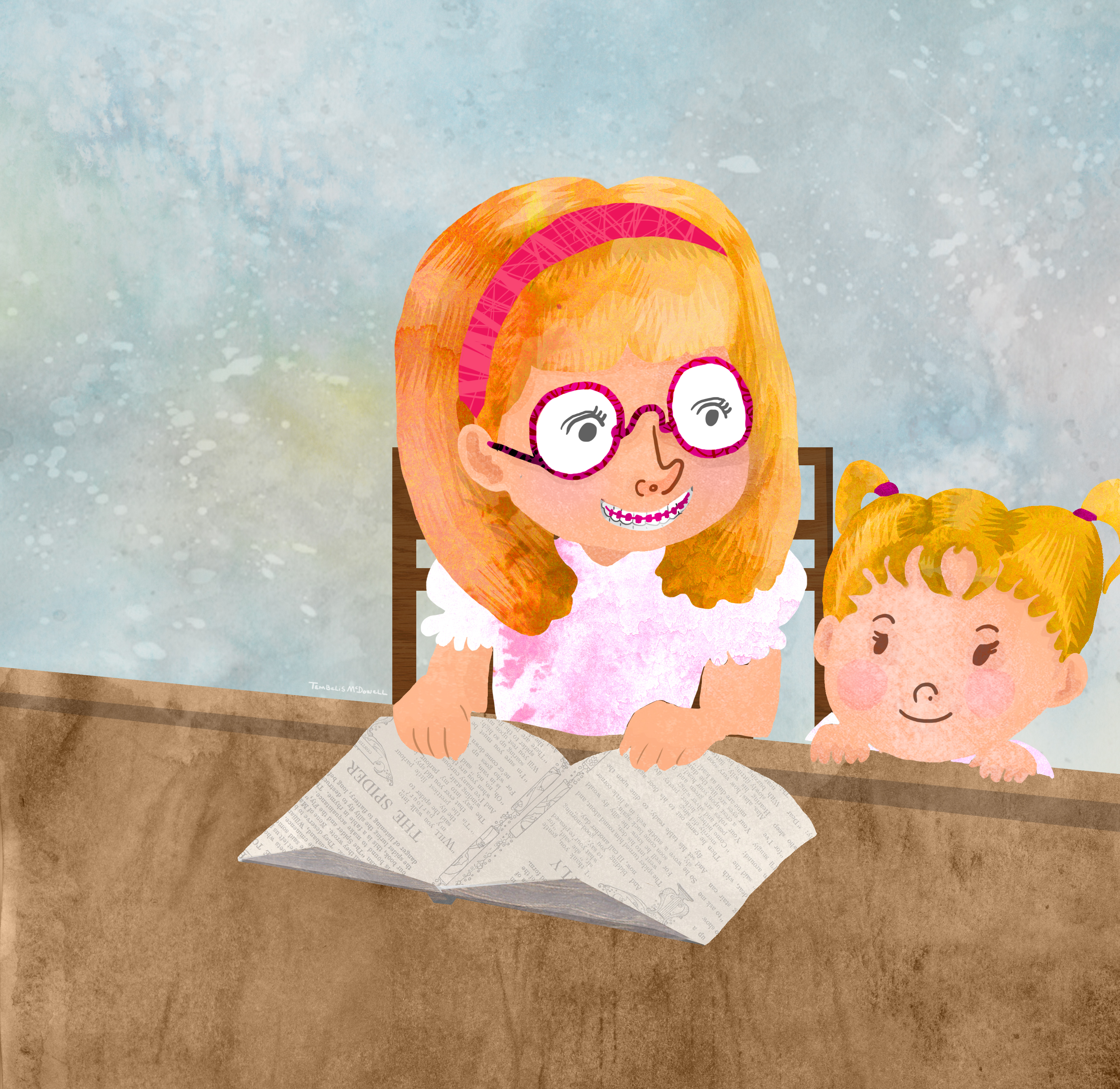 Sisters at Desk
